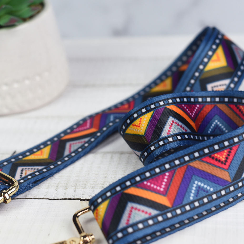 Nylon 1.5 inch Adjustable Bag Strap with Gold Hardware-Aztec